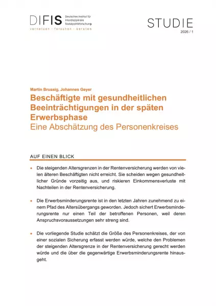 DIFIS-Studie 2026/1: Beschäftigte mit gesundheitlichen Beeinträchtigungen in der späten Erwerbsphase | Eine Abschätzung des Personenkreises