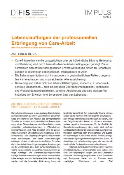 DIFIS-Impuls 2025/9: Lebenslauffolgen der professionellen Erbringung von Care-Arbeit