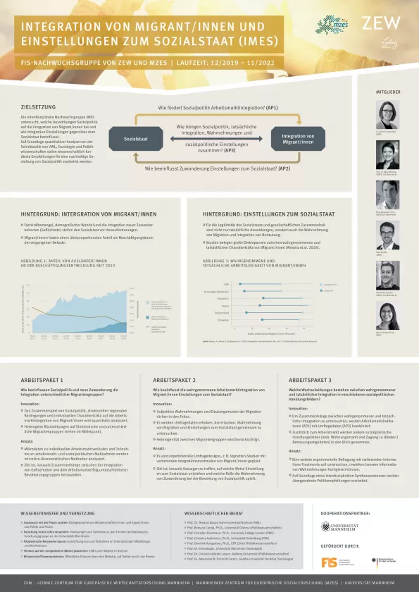 Das interdisziplinäre Vorhaben an der Schnittstelle von Volkswirtschaftslehre, Soziologie und Politikwissenschaften möchte die gebündelten Kompetenzen am Standort Mannheim nutzen. Diese entstehen aus der engen Kooperation vor allem zwischen dem Zentrum für Europäische Wirtschaftsforschung (ZEW) und dem Mannheimer Zentrum für Europäische Sozialforschung (MZES). Das interdisziplinäre Team aus Nachwuchswissenschaft-ler/innen hat diesen Antrag selbstständig konzipiert und strebt damit eine erfolgreiche Karriereentwicklung zu sozialpolitischen Themen an der Schnittstelle von Forschung und Politikberatung an. Die Nachwuchsgruppe wird von einem wissenschaftlichen Beirat von nationalen und internationalen Expert/in-nen begleitet und unterstützt.
