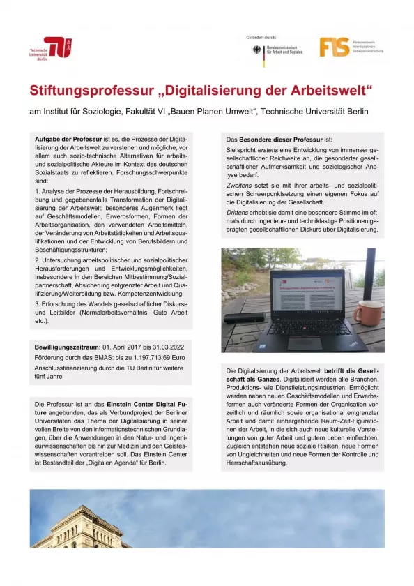 Stiftungsprofessur: "Digitalisierung der Arbeitswelt", Technische Universität Berlin