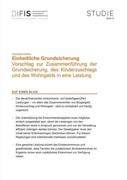 DIFIS-Studie 2025/6: Einheitliche Grundsicherung. Vorschlag zur Zusammenführung der Grundsicherung, des Kinderzuschlags und des Wohngelds in eine Leistung