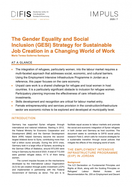 DIFIS-Impuls 2025/7: The Gender Equality and Social Inclusion (GESI) Strategy for Sustainable Job Creation in a Changing World of Work
