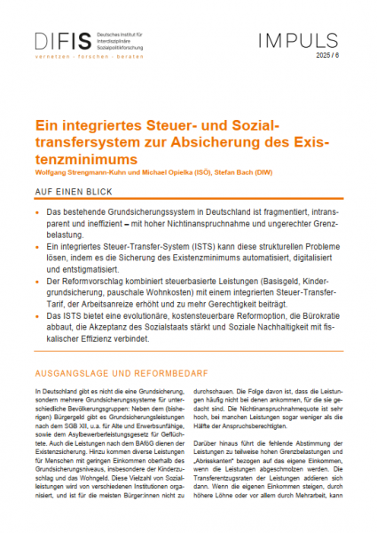 DIFIS-Impuls 2025/6: Ein integriertes Steuer- und Sozialtransfer-system zur Absicherung des Existenzminimums